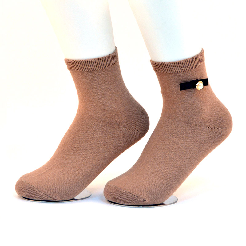 Product Name:Lady cotton socks with 3 pearls on the cuffModel Number:252-1Main Material:70%cotton, 28%polyester, 2%spandex