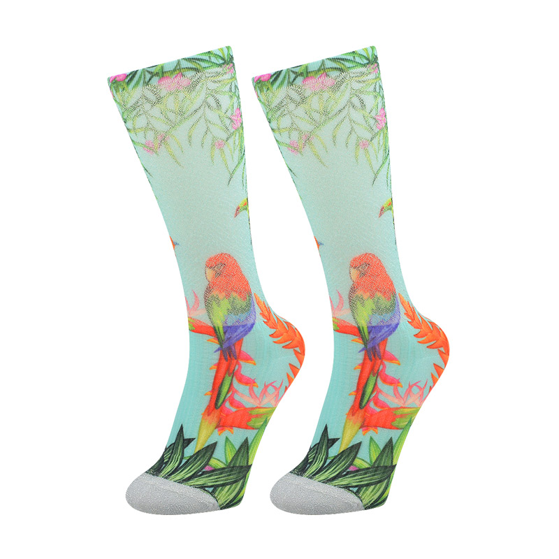 Product Name:360 degree digital printing lady knee high socksModel Number:508-6Main Material:30%nylon, 65%polyester, 5%elastane