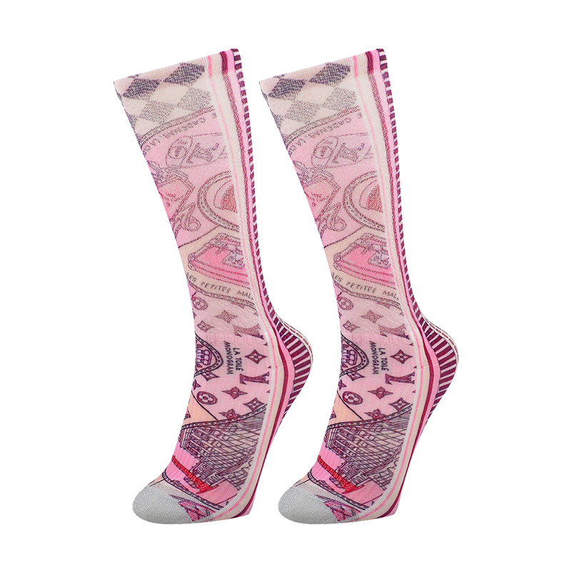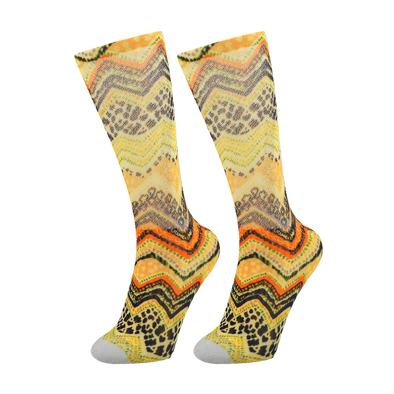 Product Name:360 degree digital printing lady knee high socksModel Number:508-5Main Material:30%nylon, 65%polyester, 5%elastane